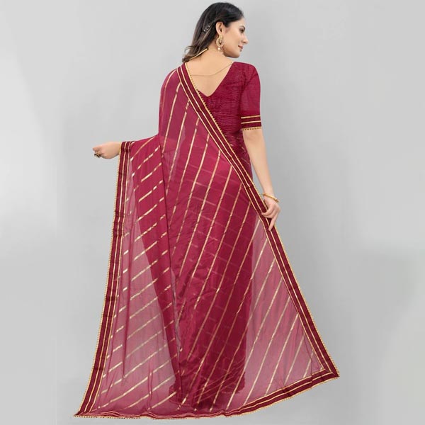 Maroon & Gold-Toned Embellished Saree