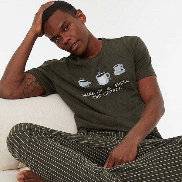 Men Khaki & Grey Pure Cotton Typography Print Pyjama Set